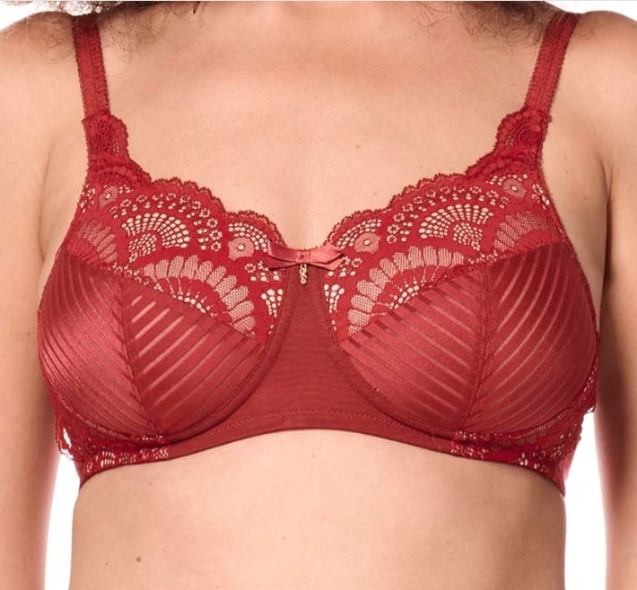 Luxurious lace with a fan optic makes our Karolina Padded Non-Wired Bra a standout. Inspired by the exquisite style of old Hollywood, our Karolina non-wired bra turns heads. Its lightly padded cups are truly supportive and create a beautiful shape, following your curves. Like all Amoena pocketed bras, the Karolina padded wire-free can hold your breast forms or shapers in place securely. We’ve added exquisite lace at the cups, and decorative straps with gold rings and adjusters to this supportive yet very light bra.