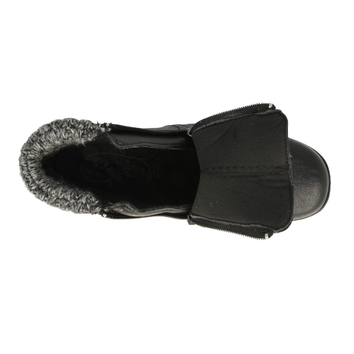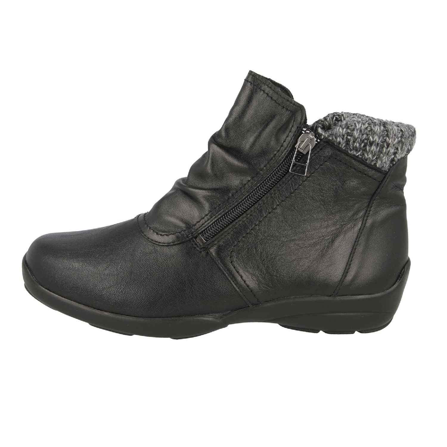 Stylish leather/stretch polyurethane with knitted trim. Double zips for easy access and stretch front panel for extra comfort. Lightweight shock absorbent sole for extra cushioning as you walk.